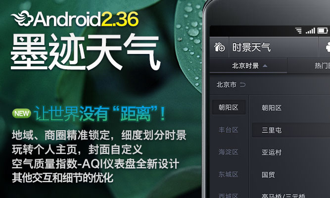 新功能: 1、时景热图上线,足不出户,一览全国各地美景; 2、锁屏、磁贴大更新,超炫界面让你的天气不再单调; 3、新增动态天气背景,动感天气更加动人; 4、随时随地拍美景,记录您的点滴生活; 5、可智能适配中、英、繁三种手机字体; 下载地址 6、提供全